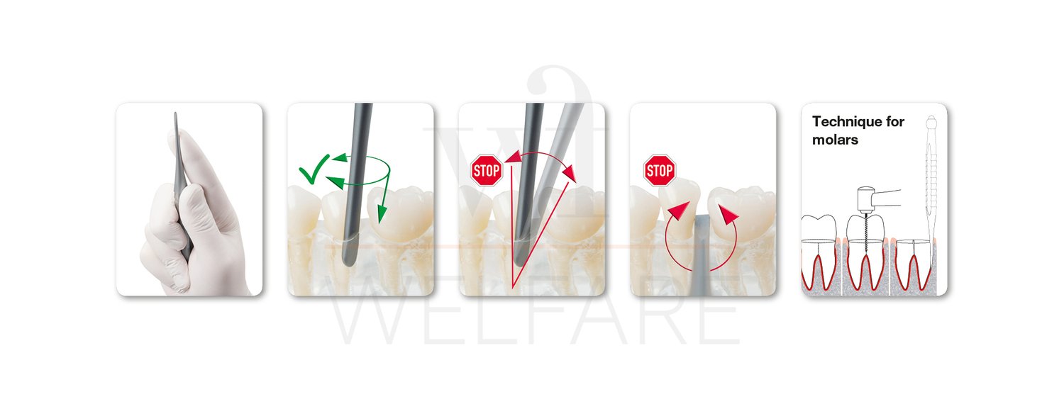 Os elevadores X-Tools foram desenvolvidos pela Helmut Zepf em conjunto com o Dr. Detlef Hildebrand, para utilização com empunhadura digital. O movimento mais delicado previne maiores traumas no alvéolo e gera menos fadiga ao profissional.